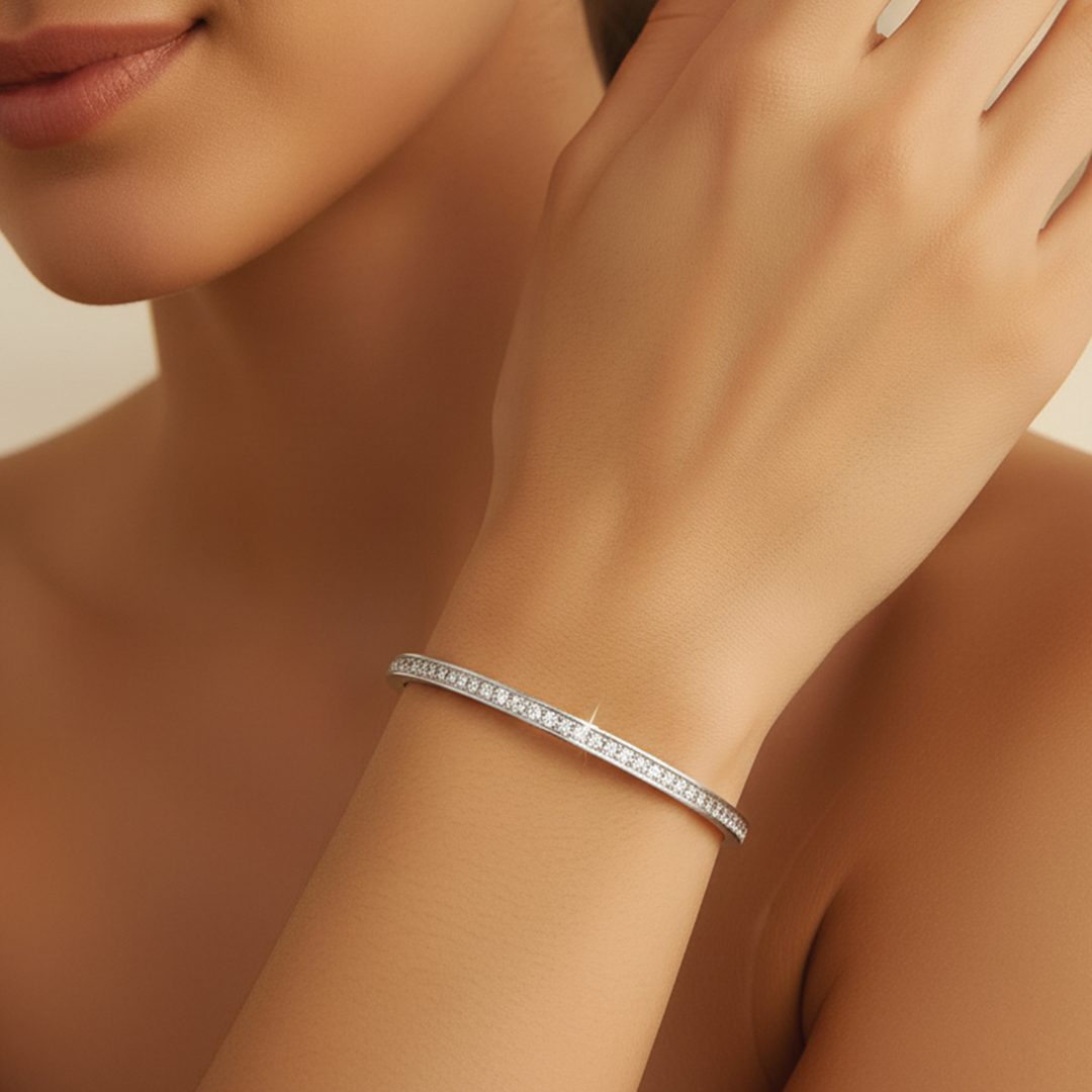 - Elegant rhinestone bangle adorned with clear stones for subtle sparkle