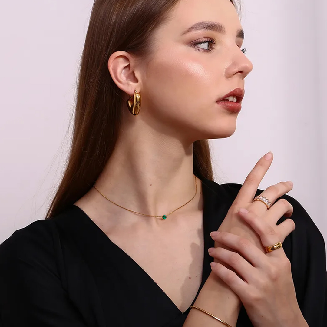 Add a refreshing pop of color to your jewellery collection with the Green Zircon Diamond Pendant Necklace, crafted with a radiant 18K Gold Plated finish. This elegant piece highlights a dazzling zircon diamond in a striking green hue, set against a sleek gold chain that enhances its brilliance. The dainty yet captivating design makes it the perfect accessory for those who love subtle sophistication with a hint of sparkle.