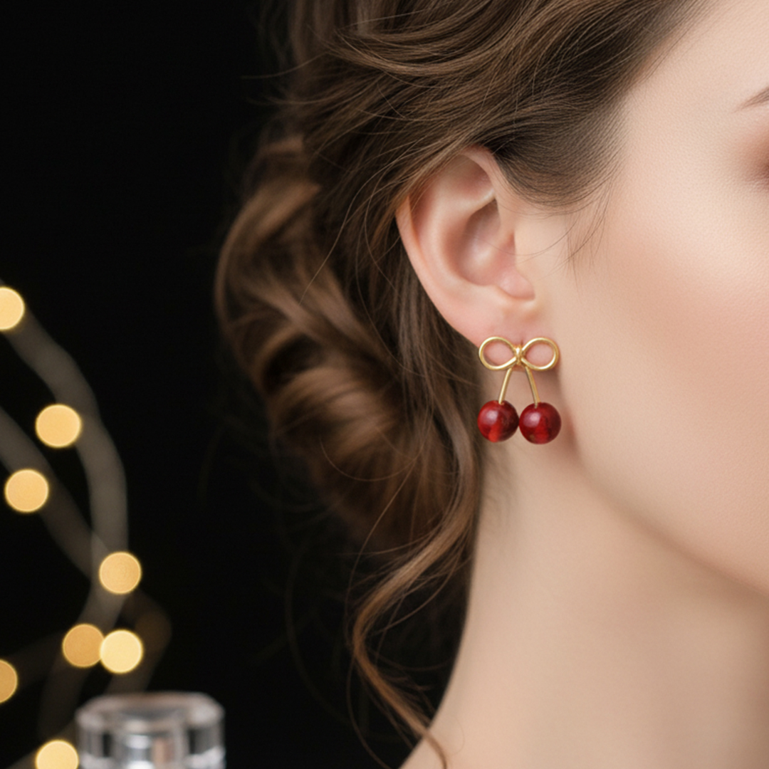 The cherry studs sit delicately on your ears, adding a subtle pop of color and personality that makes them an eye-catching accessory. Ideal for women who appreciate fun yet refined jewellery, these earrings easily transition from everyday wear to evening outings.