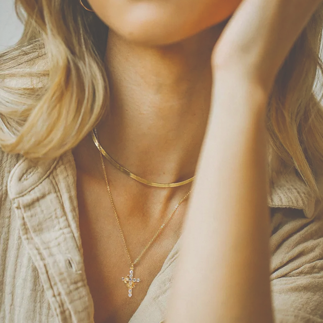 - Clear zircon stones delicately embedded on the cross for added sparkle