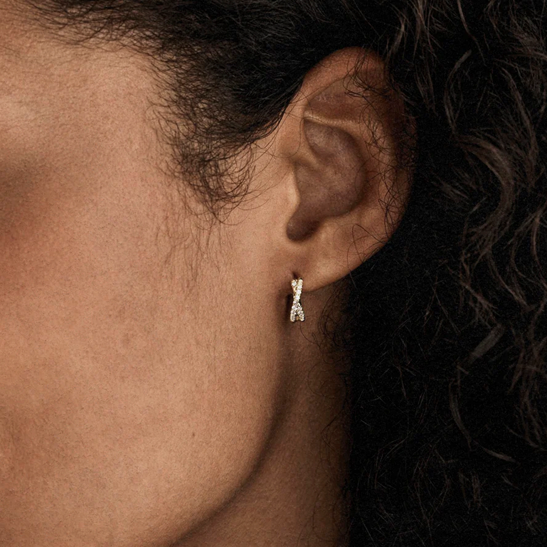The diamond cross pattern adds a contemporary twist to classic mini diamond hoop earrings, symbolizing balance, style, and elegance.